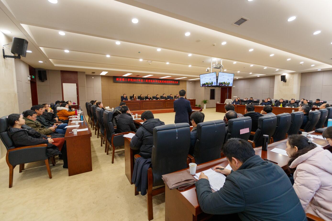 1月16日上午,学校党委在南院图书馆11楼会议室召开学校2017年度二级党组织书记抓党建述职评议考核大会,学校全体党委委员,党群部门负责同志,二级党组织书记、副书记、支部书记代表参加会议。会议由校党委委员、副校长刘亦工主持。