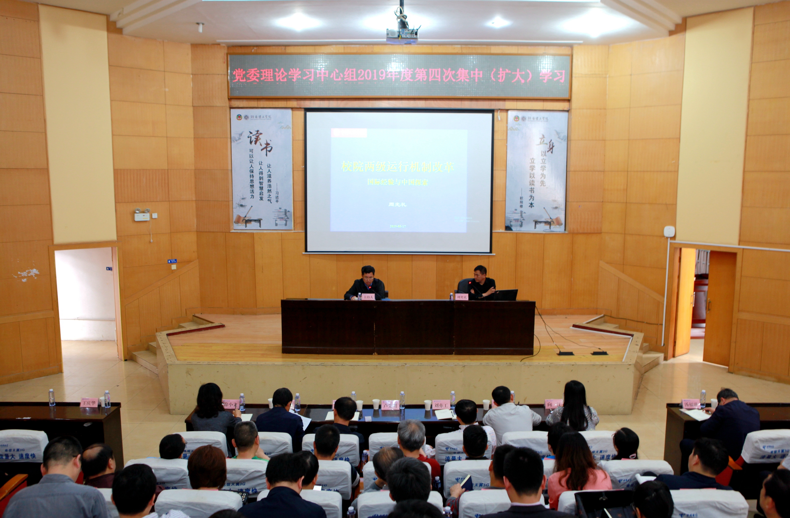 5月17日上午,党委副书记、校长卢先明主持召开学校党委理论学习中心组2019年度第四次集中(扩大)学习,邀请到了中国人民大学博士生导师周光礼教授主讲“世界一流大学校院两级运行机制改革”。