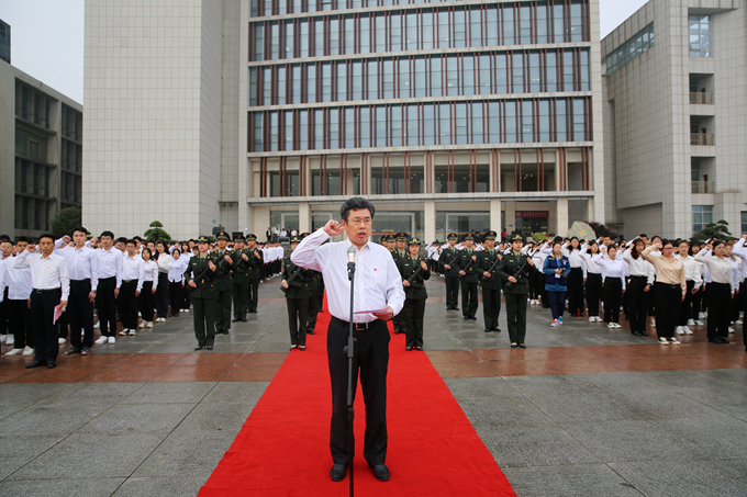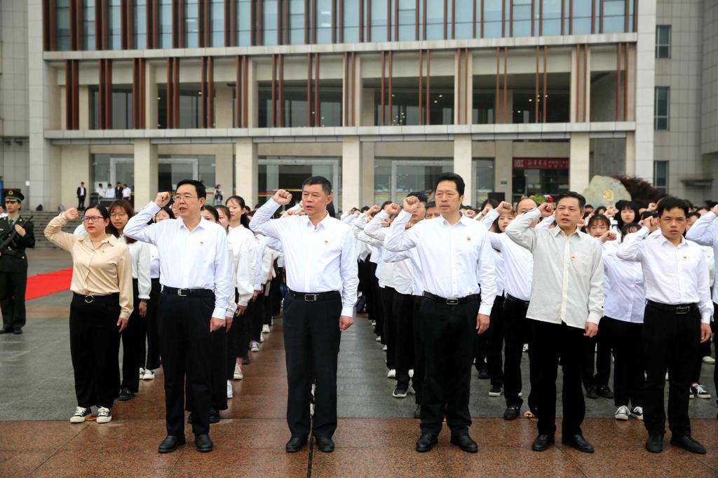 五星红旗作证,无悔青春作证。4月27日上午,“青春向党”湖南理工学院千名大学生集体入党宣誓仪式在图书馆国旗广场举行,千名大学生党员排成整齐方阵,右拳高举,发出了誓为共产主义奋斗终身的铮铮誓言。学校党委班子成员、二级党组织负责人参加了宣誓,党委副书记张国云主持仪式。