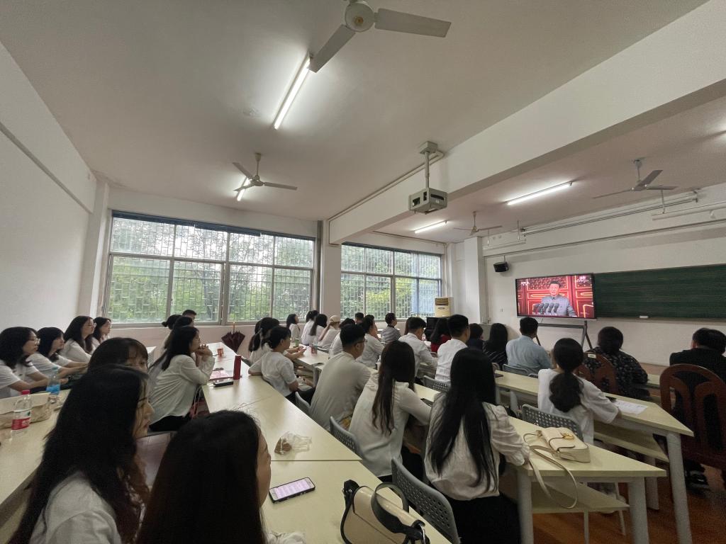 奋斗百年路,启航新征程。7月1日,全校师生热情收看庆祝中国共产党成立100周年大会直播盛况,全体校领导和机关部门在办公楼214集中收看,各二级党组织师生分别在会议室、教研室、教室集中收看。