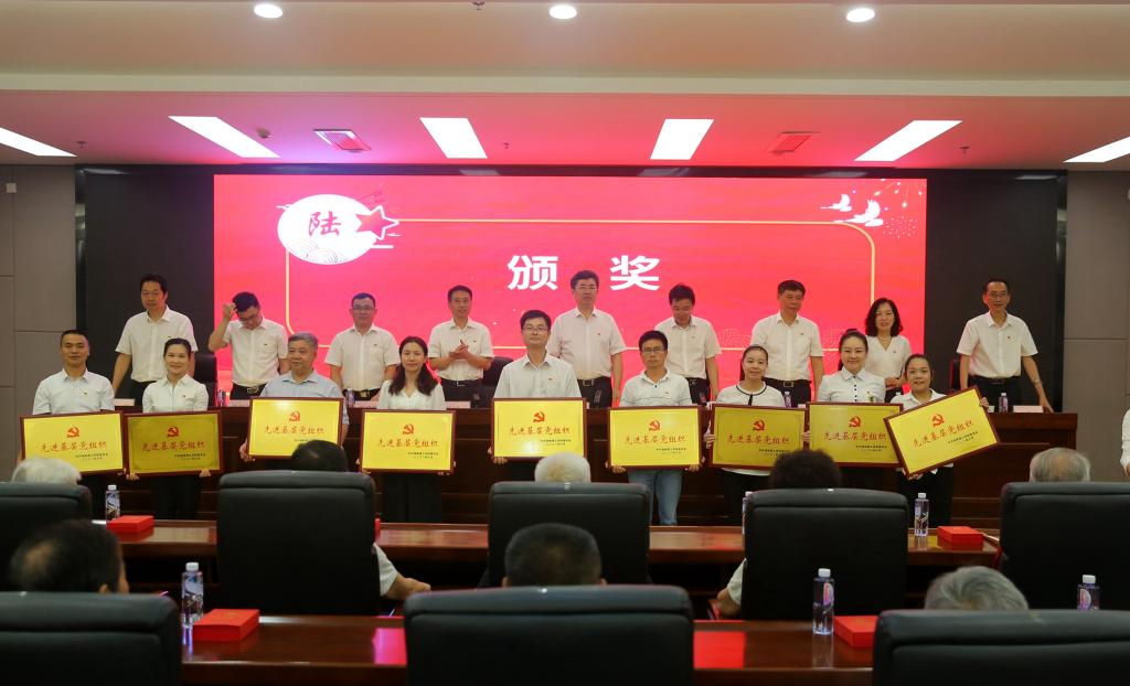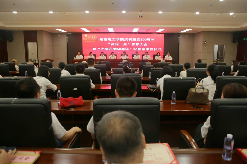 党委副书记张国云宣读“光荣在党50年”纪念章颁发名单和党建评优表彰名单,太阳成集团tyc32位老党员荣获“光荣在党50年”纪念章;学工团委党支部等3个支部和信息学院涂兵同志等一批党员获评全国、全省高校“对标争先”项目;机械学院陈曦等同志和化学化工学院党委获全省教育系统“两优一先”表彰;187名优秀共产党员、20名优秀党务工作者和20个基层党组织受到学校“两优一先”表彰。