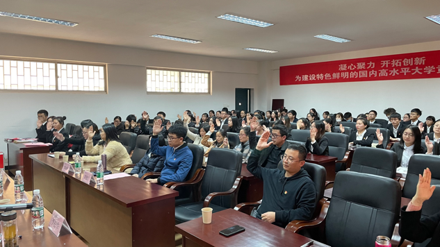 大会在庄严的《国歌》声中拉开序幕。学院党委书记孙明保代表上一届委员会作题为《凝心聚力开拓创新为建设特色鲜明的国内高水平大学贡献新力量》的工作报告。报告对学院上一届党委委员会的工作进行了全面回顾与总结,充分阐释了党建与思想政治工作、教学科研、人才培养等方面所取得的成绩,实事求是指出了存在的问题和不足。报告同时提出了未来五年学院党建及各项事业发展的思路举措。大会严格按照规定,审议并通过了党委工作报告、选举办法、党委委员候选人名单、监票人名单等;采用无记名投票方式对新一届党委委员进行差额选举。根据投票结果,孙明保、齐亮菲、李松华、周小强、罗德仁当选为新一届党委委员。随后,新当选的党委委员召开第一次全体会议,选举孙明保为党委书记,周小强、齐亮菲为党委副书记,并对其他委员进行了分工。孙明保代表新一届党委委员作表态讲话。