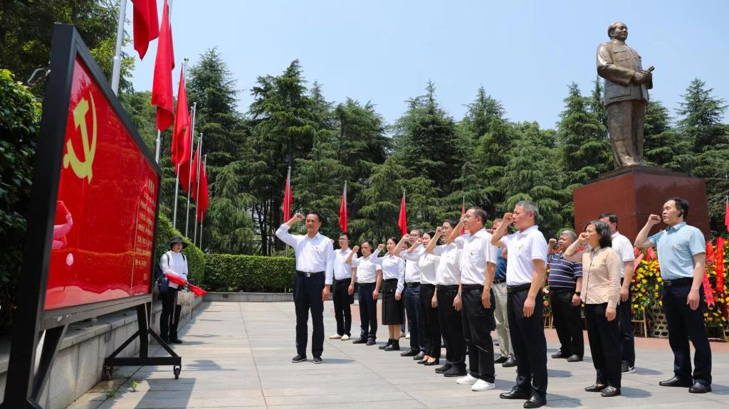 学员们首先来到韶山毛泽东铜像广场,向毛泽东同志铜像敬献花篮,全体学员面向党旗,在陈超文同志的领誓下,重温了入党誓词。