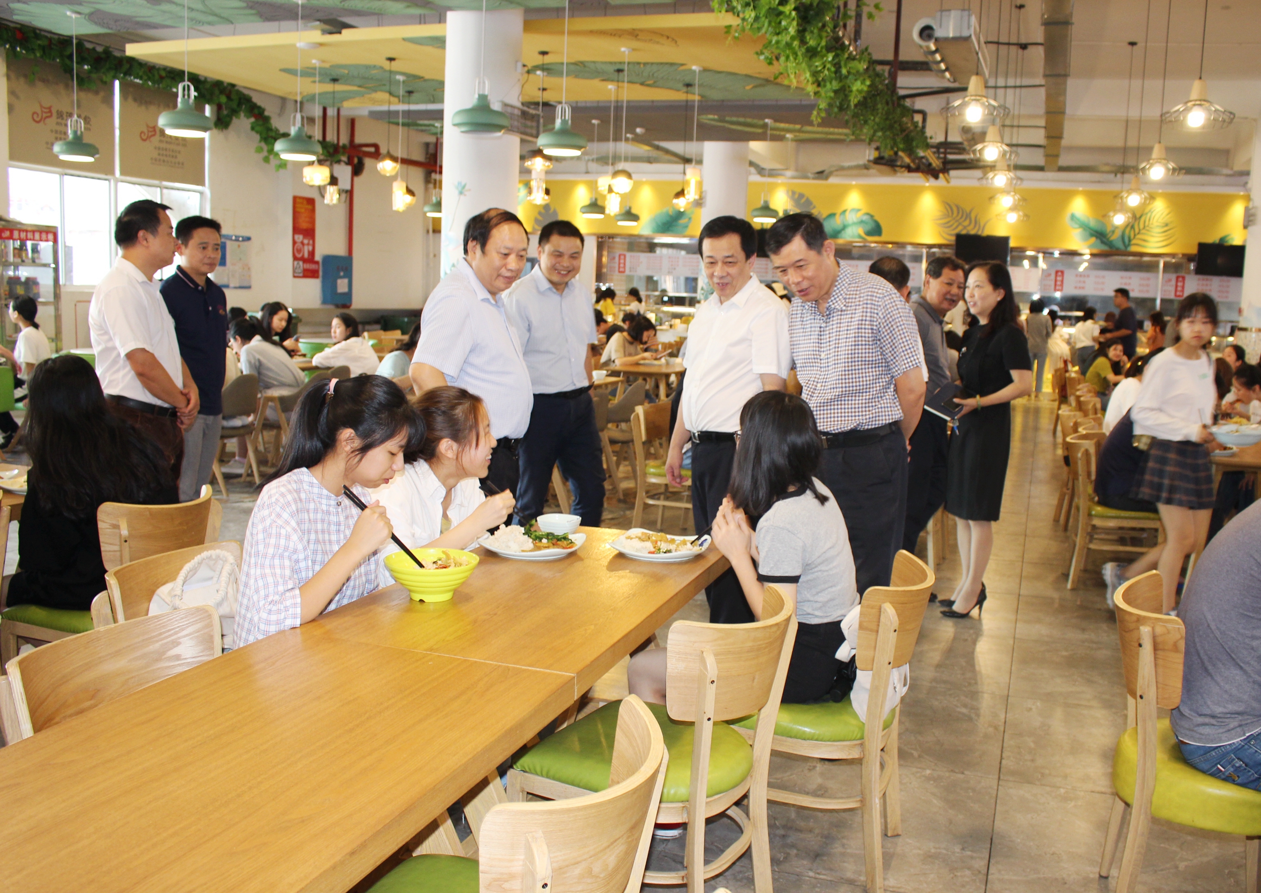 9月30日中午,党委书记李明一行深入学校食堂,调研指导后勤餐饮服务保障工作,副校长刘亦工、徐小立,总会计师汤福球,后勤处处长王安新等陪同调研。