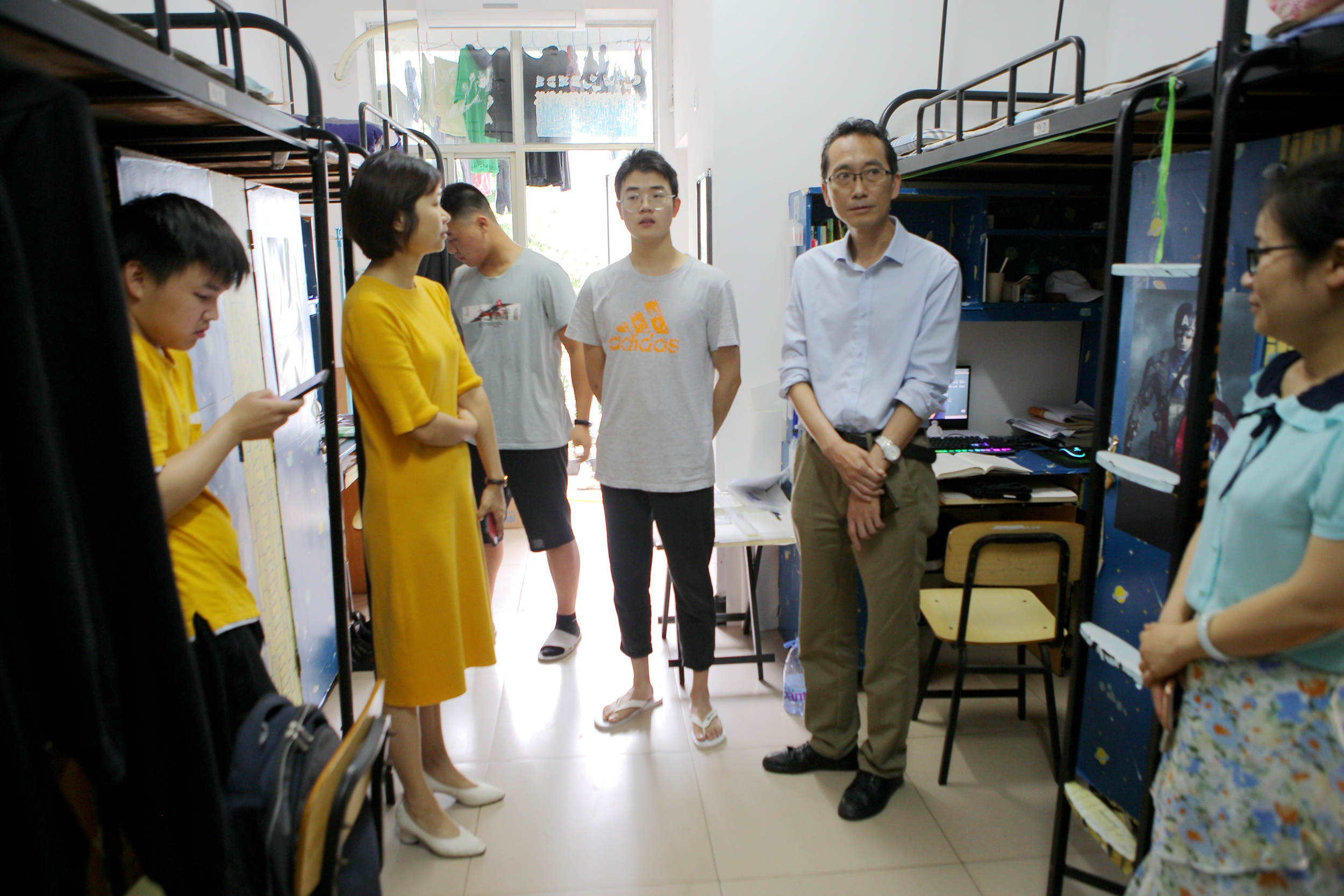 “感谢老师的关心,我在学校生活学习一切正常,目前在复习考研,我们寝室四个人会一起复习,遇到困难相关帮助,共同努力。”6月24日,机械学院大三学生黄涵宇和室友们正在热烈的讨论问题,几位特别“访客”的到来让他们惊喜又感动。机械学院院长丁跃浇,党委书记陈积光来到寝室,倾听学生们的学业难题、生活烦恼,为学生们答疑解惑,努力解决学生遇到的实际问题。