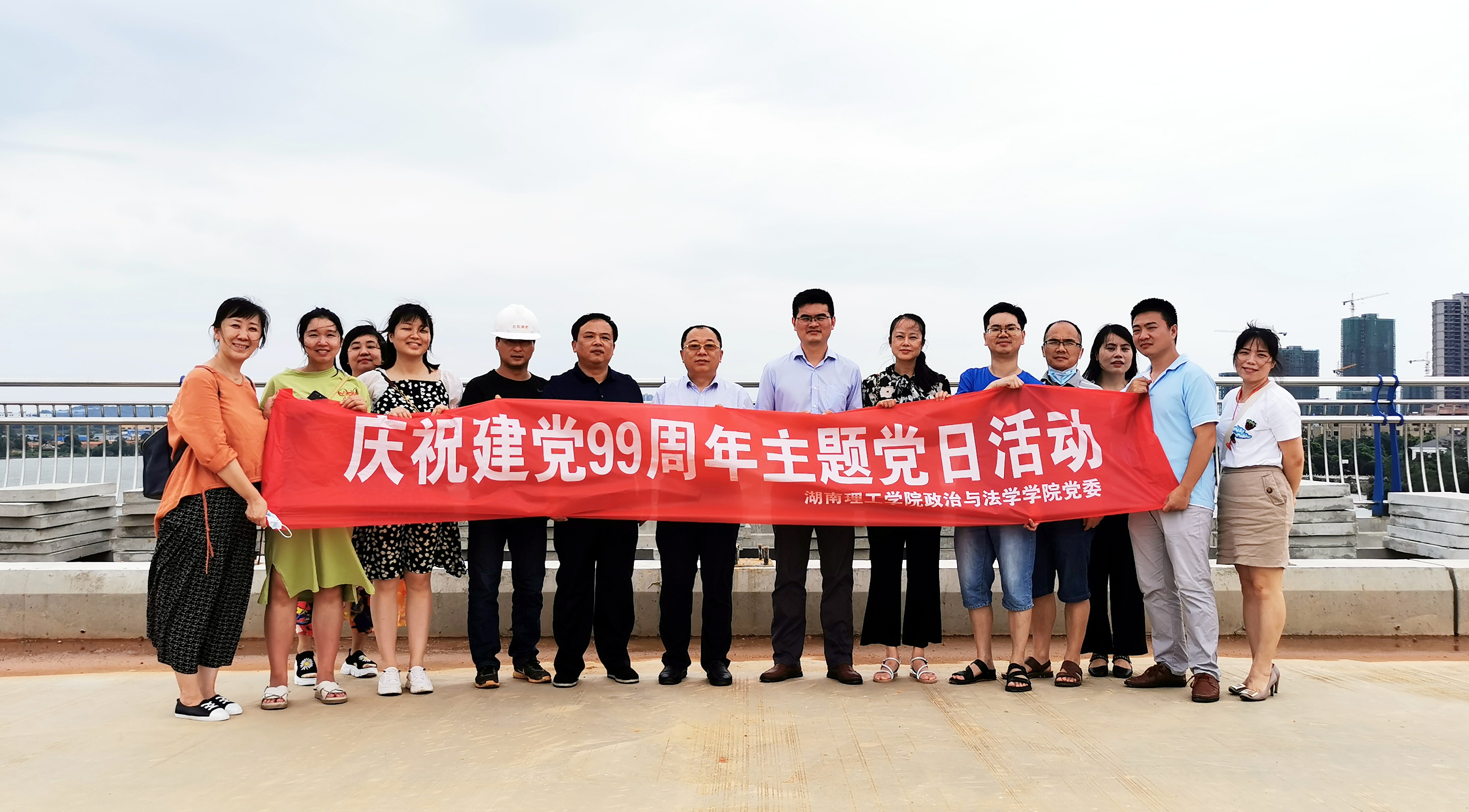 6月28日,政治与法学学院党委组织党员老师开展庆祝建党99周年主题党日活动,学院老师在建设中的北环线芭蕉湖大桥施工工地上合影