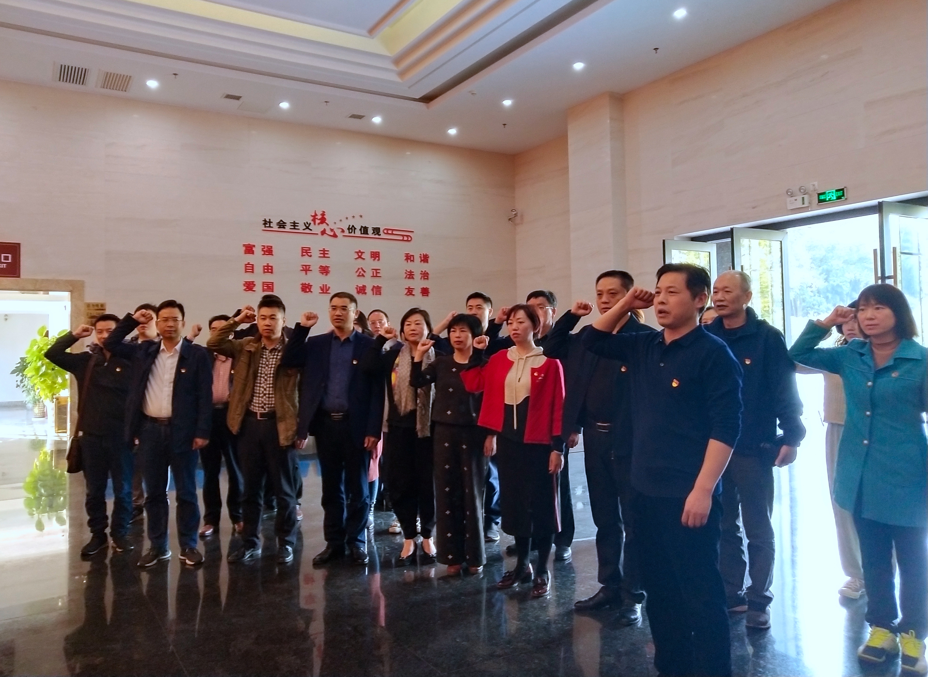在何长工同志的雕像前,大家举起右手,面向党旗再次庄重宣誓,表达为党的事业奋斗终生的决心!