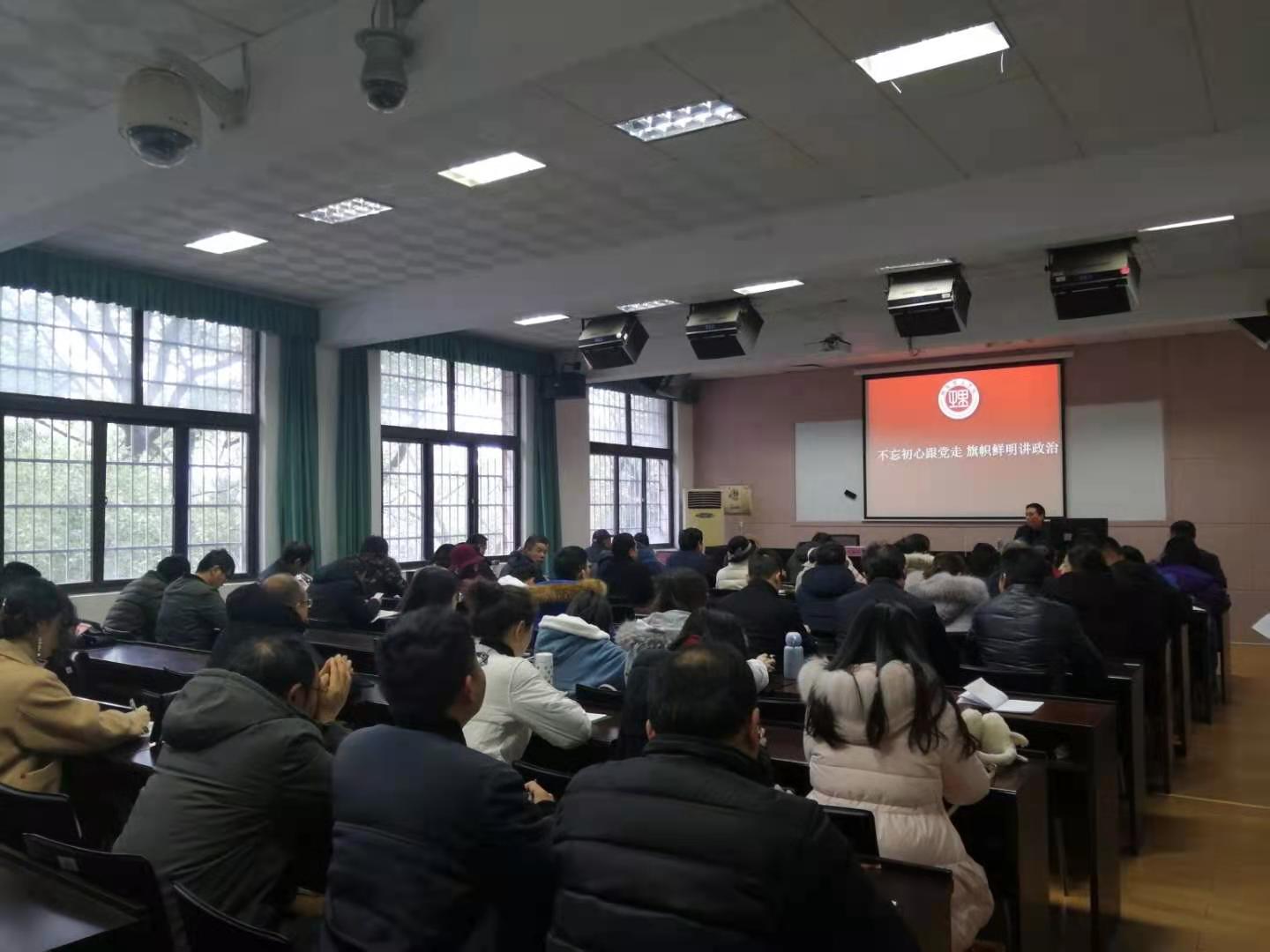 教育科学学院、信息学院等教学单位和学校工会、研究生院、基建处、科技处、社科中心、信息中心、期刊社等机关教辅单位的党员师生一同听党课。
