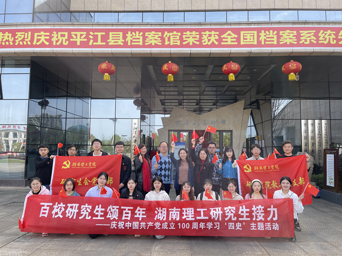 为深入学习贯彻习近平总书记在党史学习教育动员大会重要讲话精神,进一步抓好师生党员党史学习教育工作。3月22日,太阳成集团tyc研究生院党总支组织全体教工党员和研究生会全体党员骨干赴平江开展“庆祝中国共产党成立100周年学习四史”主题党日活动。