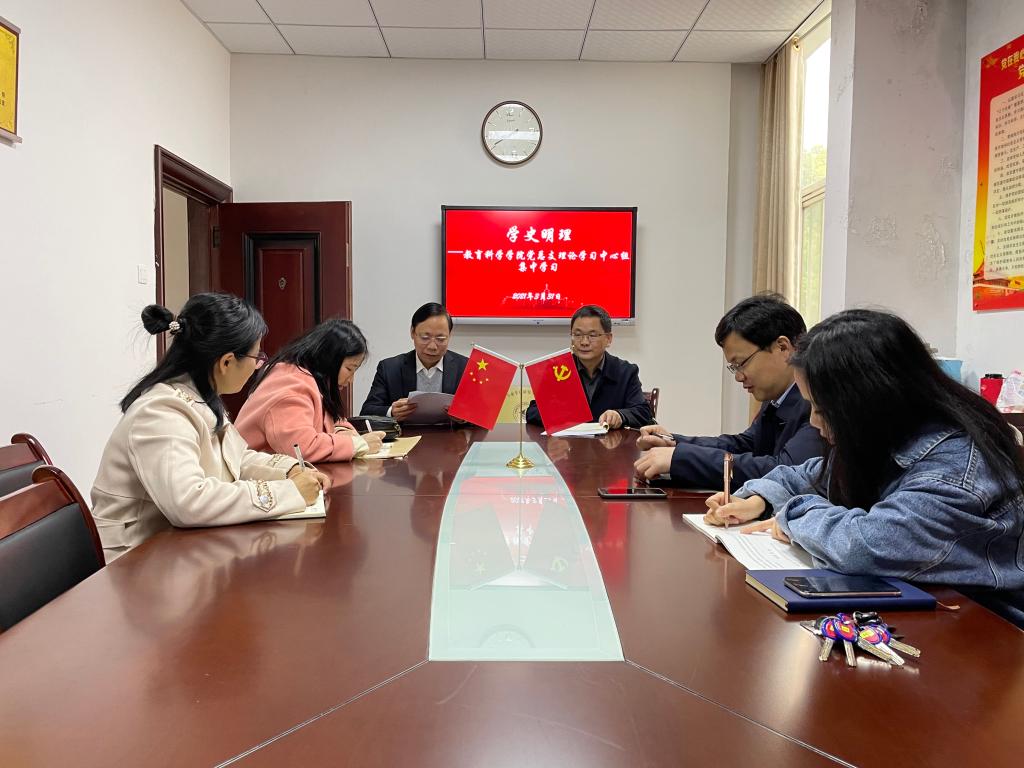 3月31日上午,教育科学学院党总支理论学习中心组在学院党员活动室(综合楼314室)开展党史学习教育。中心组全体成员参加学习。