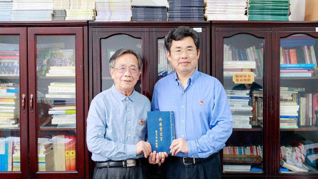 党委书记卢先明代表学校接过这份承载着老党员拳拳红心的珍贵礼物