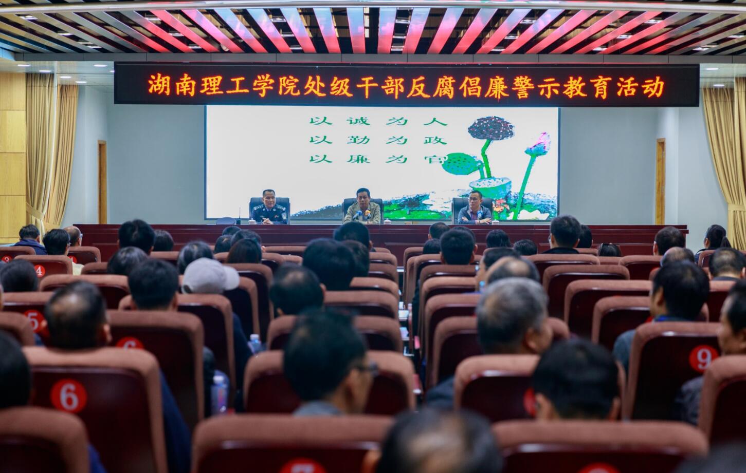 在教育基地召开的湖南理工学院领导干部反腐倡廉警示教育大会上,大家观看了警示教育专题片《任性的代价》,从对岳阳本地腐败案件的剖析中汲取教训。一名职务犯罪服刑人员以其自身从党员领导干部逐步堕落为犯罪分子的经历现身说法,以深刻的忏悔为在场的领导干部上了一堂生动、震撼的警示教育课。