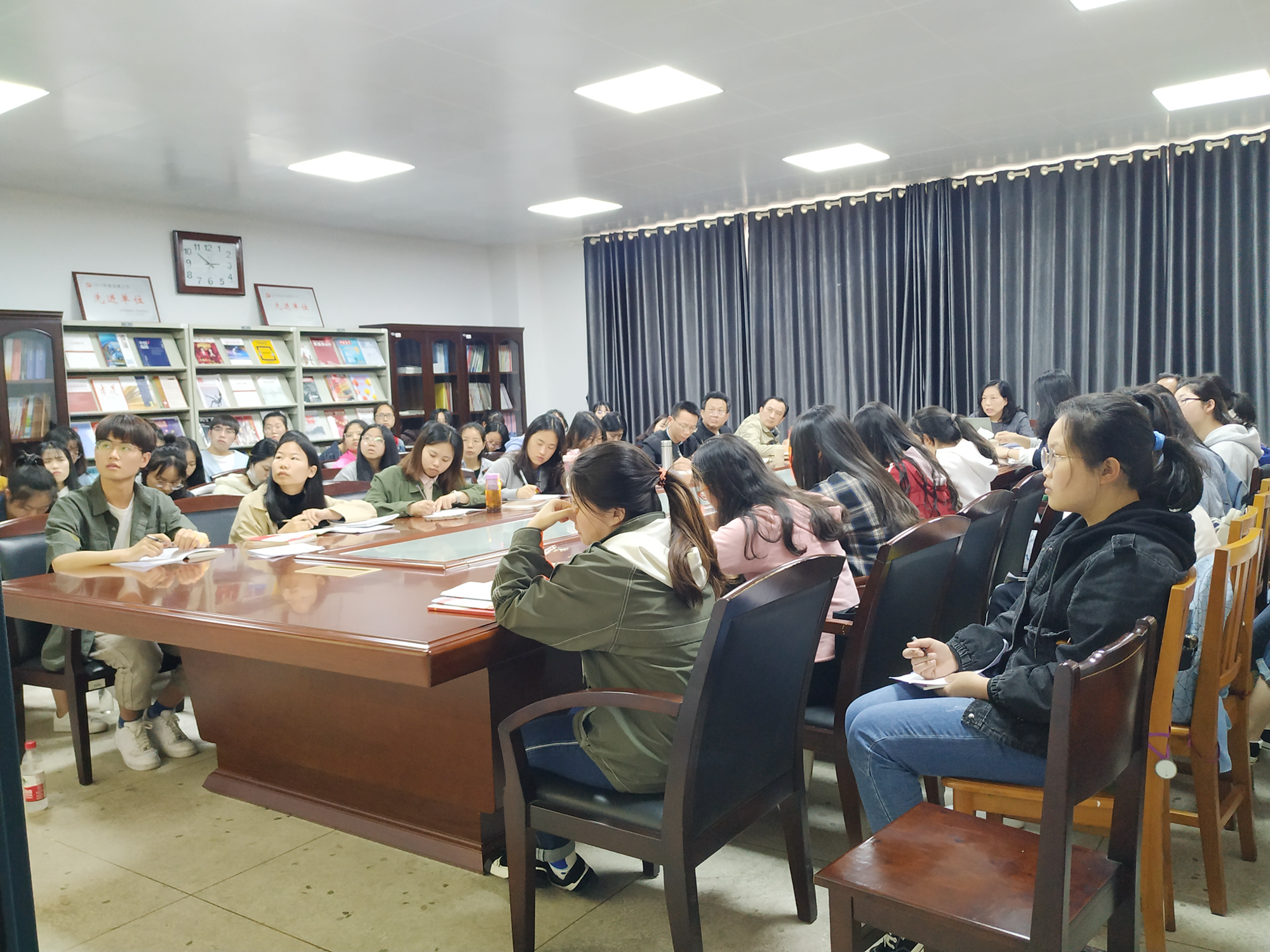 徐小立还就习近平总书记在纪念五四运动100周年上的讲话内容与同学们进行深入交流。她指出,五四运动是中国近代谋求民族复兴的历史新起点,它开启了近代中华民族思想解放的长河。“青年兴则国家兴,青年强则国家强。”徐小立勉励青年学生在时代的感召下,在中国梦的指引下,牢记青年人的使命和担当,不忘初心,砥砺前行。