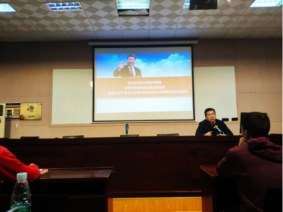 此次培训校党委学工部部长徐振祥结合习近平“对话青年,观注青年,寄望青年”为主题为同学们进行授课。在培训过程中,徐部长提出要牢记习近平总书记的期盼,坚定青年成长成年的历史使命。他还引用习近平总书记讲话内容:高校要牢牢抓住培养社会主义建设者和接班人这个根本任务,坚持办学正确方向,建设高素质教师队伍,形成高水平人才培养体系,努力建设中国特色世界一流大学。他认为,大学是一个立德树人,培养人才和放飞梦想的地方,当代大学生要做的第一件事就是要树立正确的三观。同时劝导同学们养成关注时事的好习惯,要相信党,相信国家。
