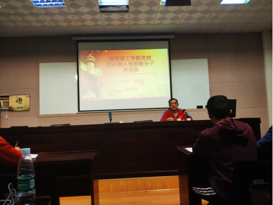 为加强党的组织建设,深化党的基本理论、基本路线和基本纲领的教育,切实做好入党积极分子的培养发展工作,第四十期入党积极分子培训班第四课于4月28日晚上在东院一栋教学楼1302教室举行。党委学工部部长徐振祥、体育学院党总支书记李佳川授课。